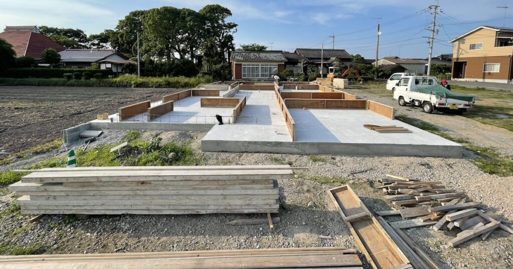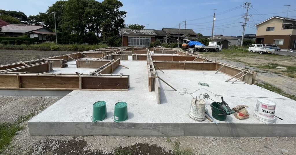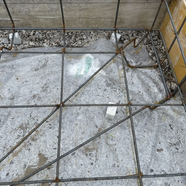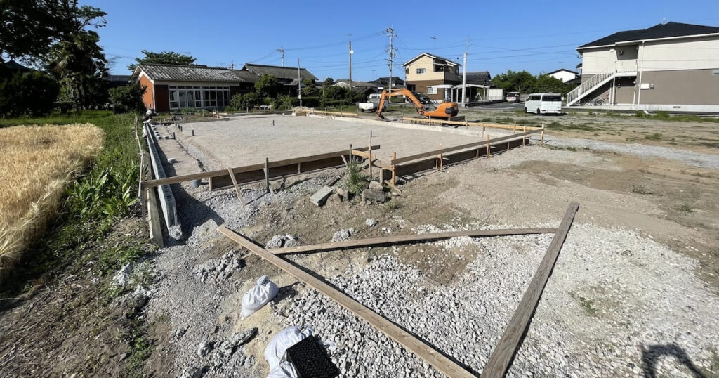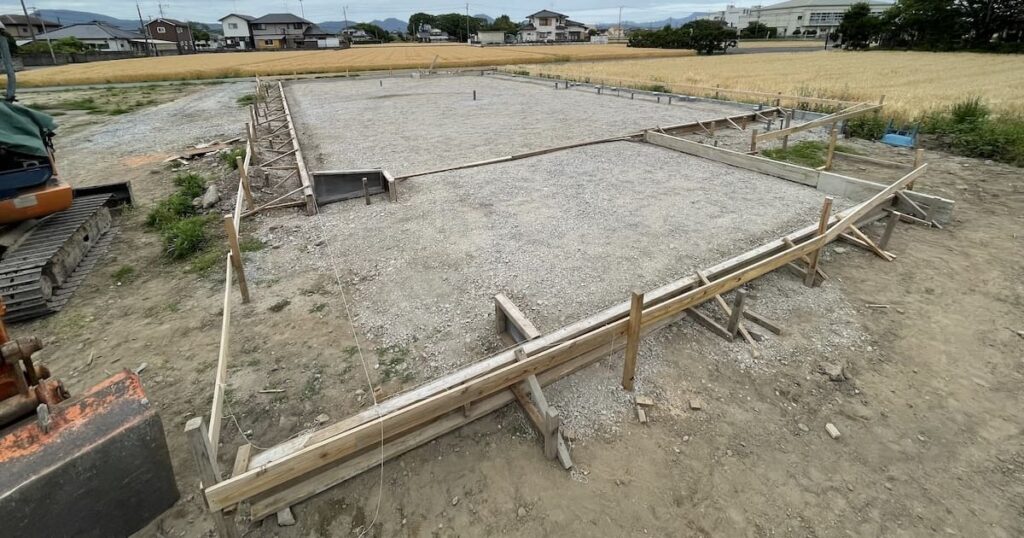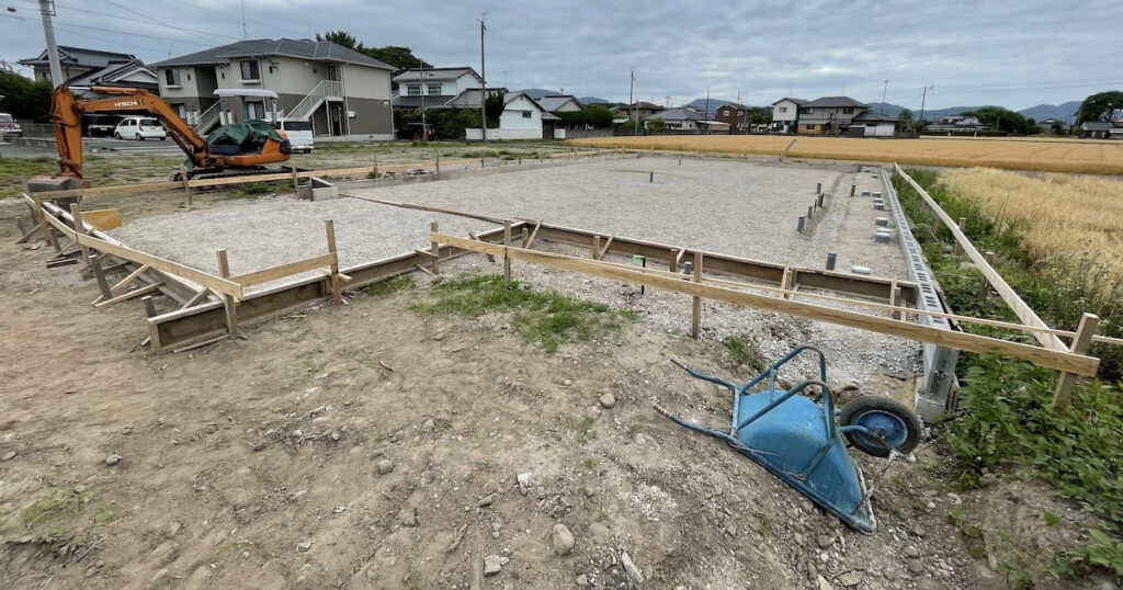 地鎮祭の時にもらった御札をコンクリート打つ前に埋める作業。