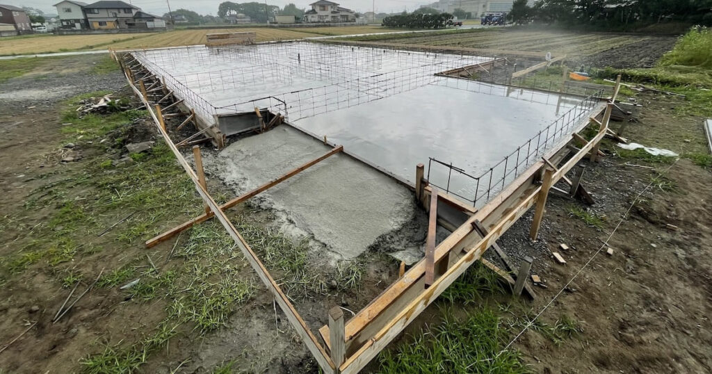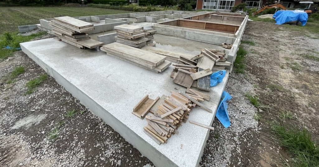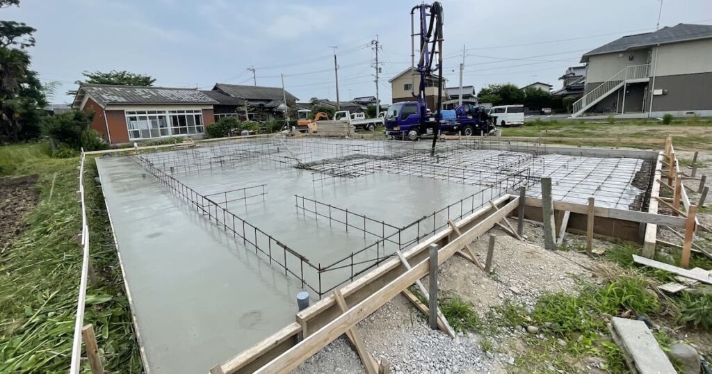 再びポンプ車を呼んで、立ち上がり部分に生コンを打設。