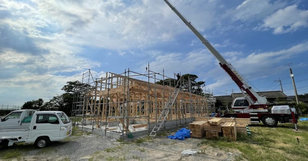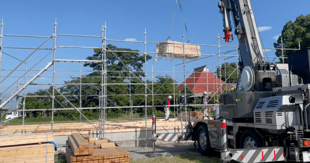 足場工事を終わらせて、ついに棟上げの日がやってきた。