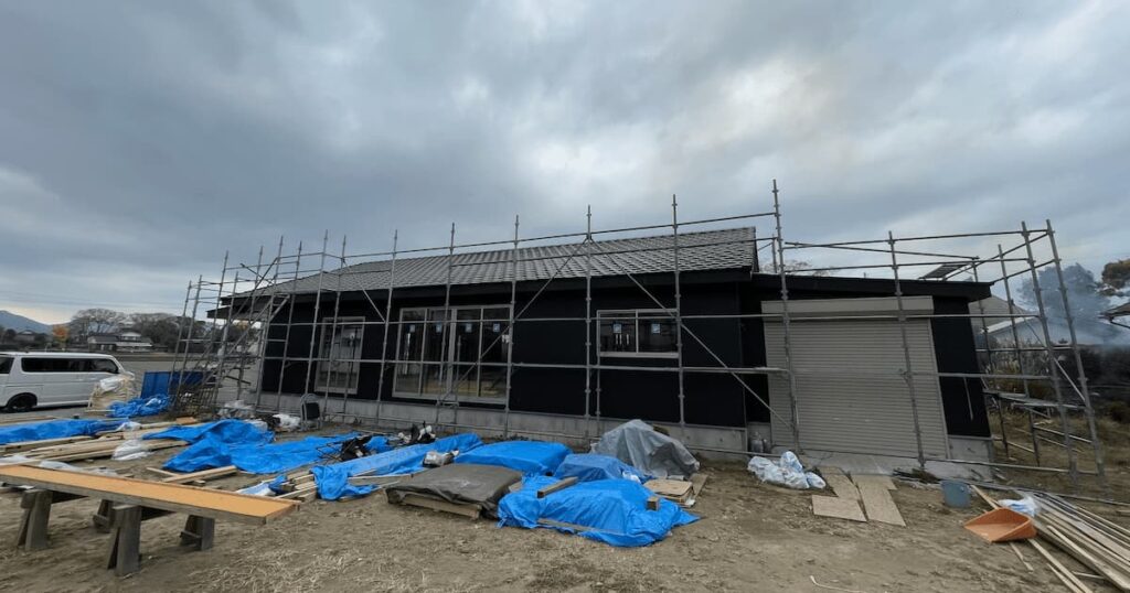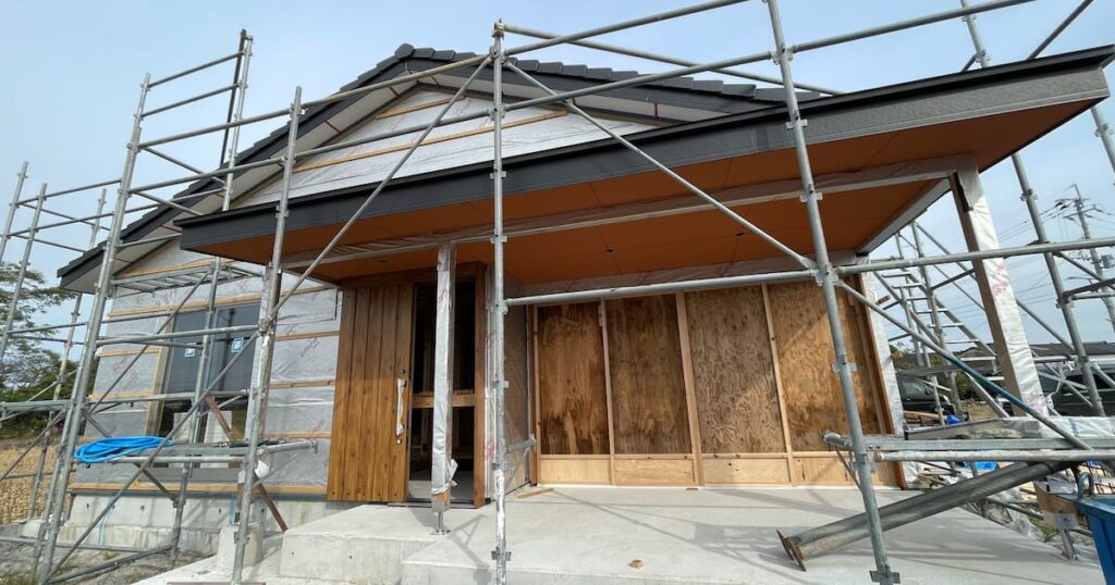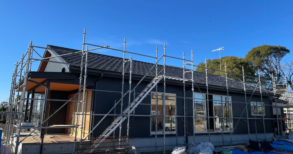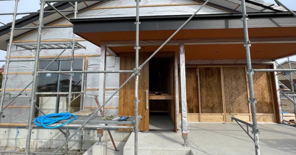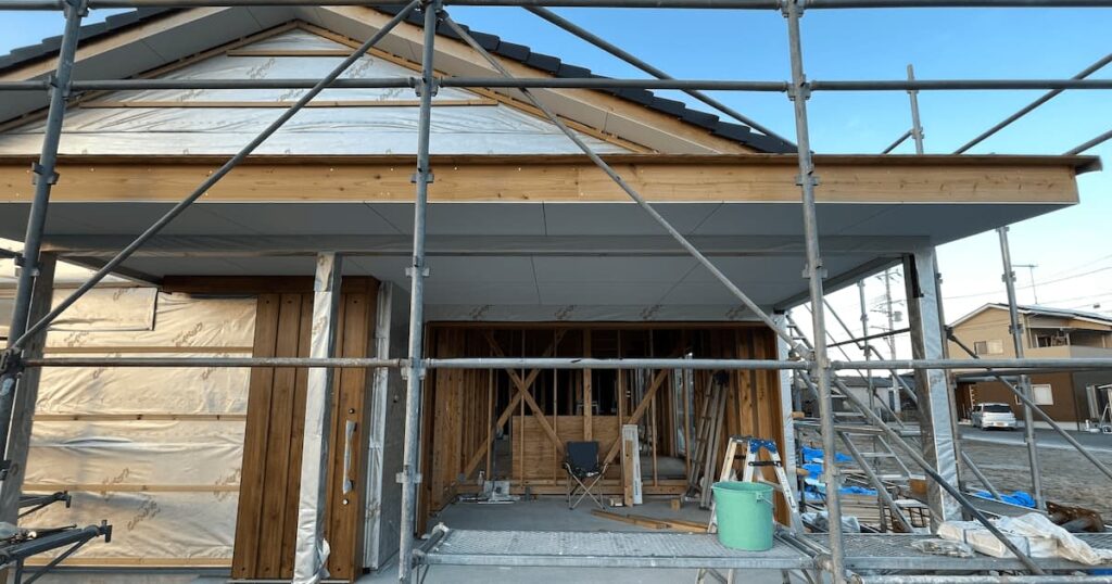 テラス部分の軒下素材はコスト削減でサイディングではなく、ボードにして塗装をしてもらうことになった。