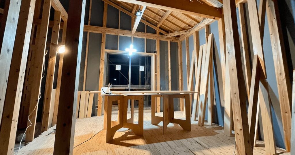 同時進行で室内の造作作業も進んでいく。