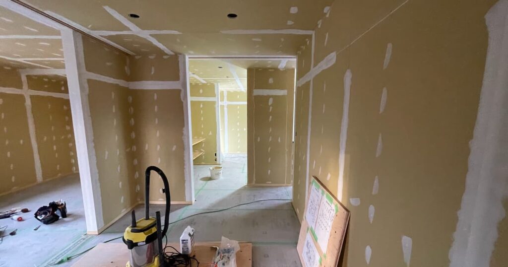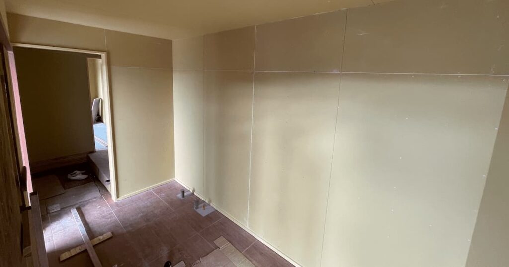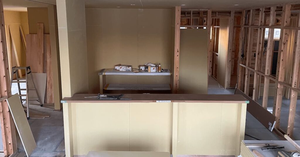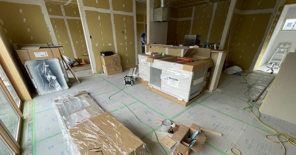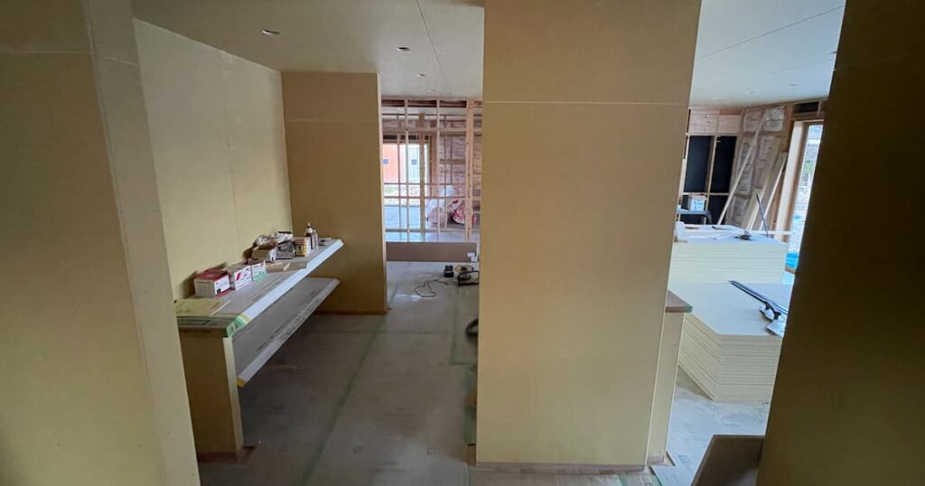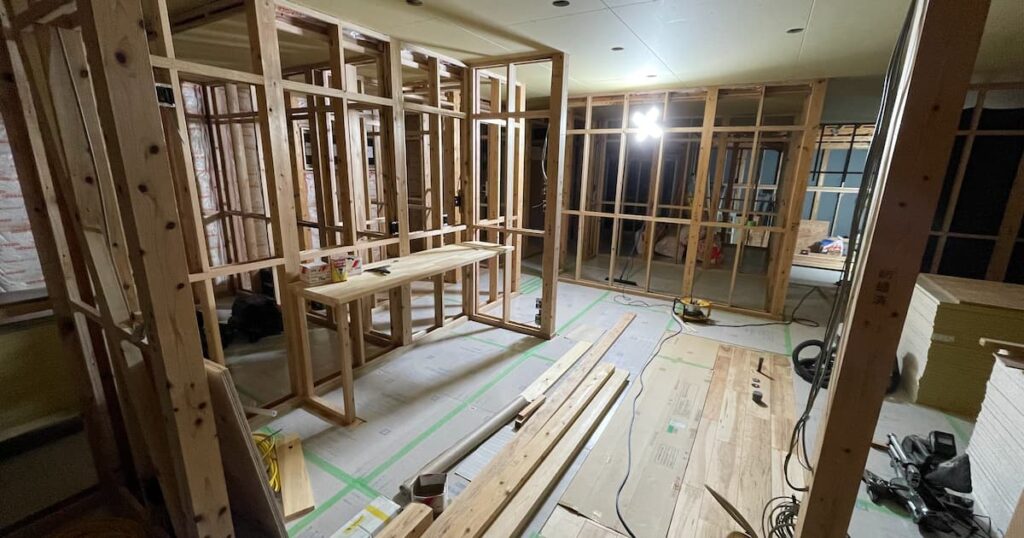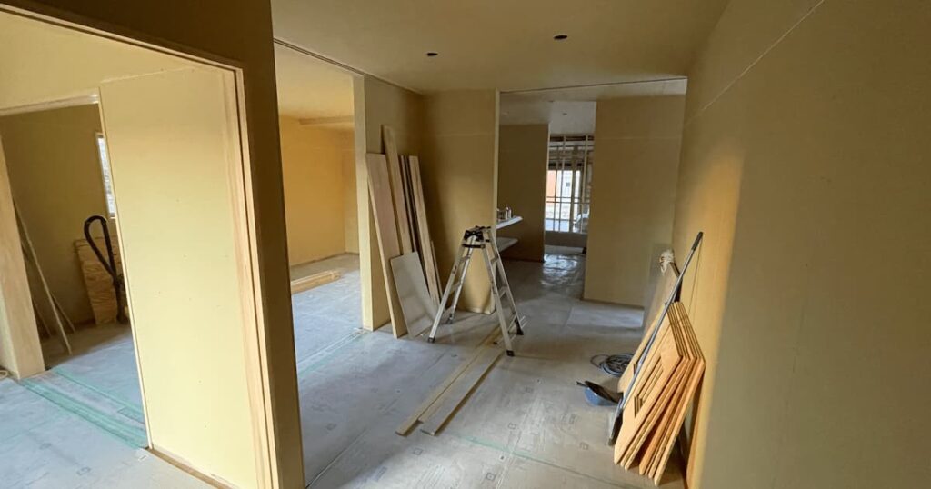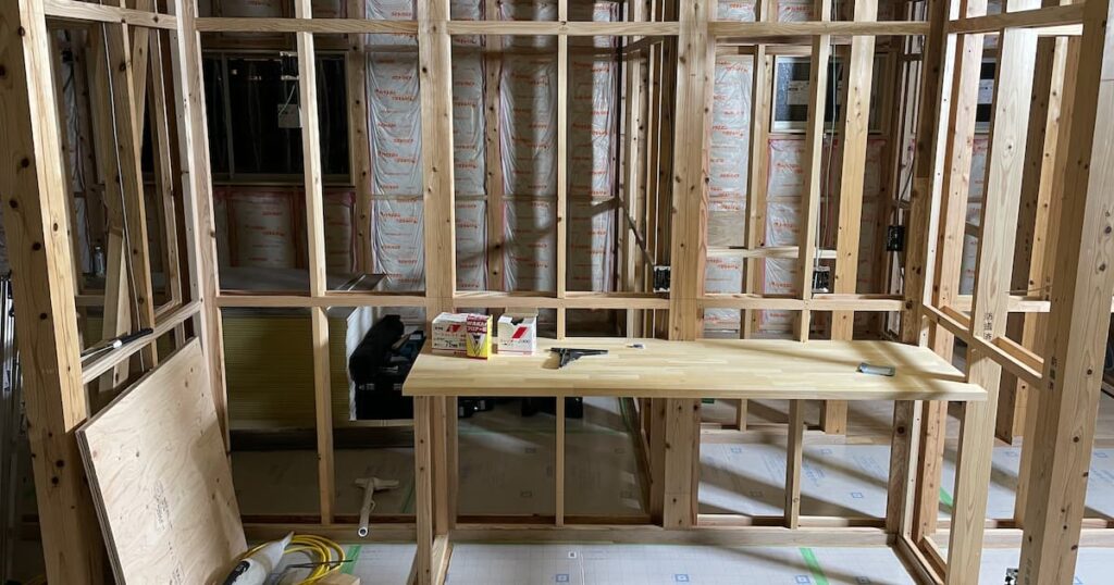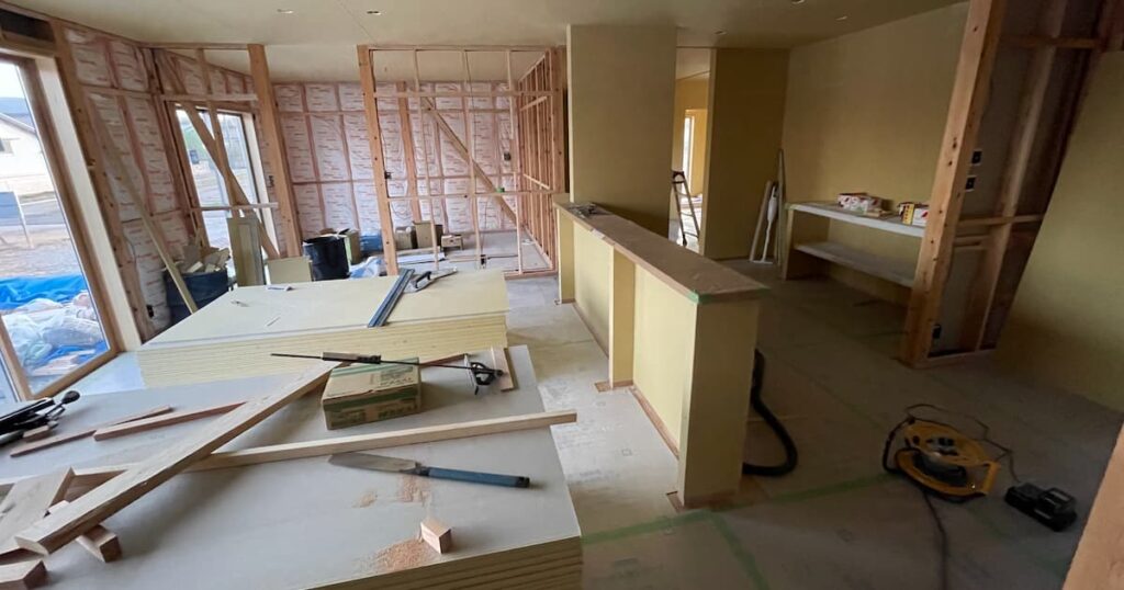 ここからは室内の造作がメイン。天井や壁のボードを取り付けていく。